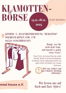 Wir, der mad house e.V., halten im Sinne der offenen Kinder- & Jugendarbeit vielfältige Angebote zur Freizeitgestaltung und der außerschulischen Jugendarbeit bereit. Unsere offene Jugendarbeit schafft Möglichkeiten zur Begegnung sowie zum gegenseitigen Kennenlernen in unseren beiden Einrichtungen.